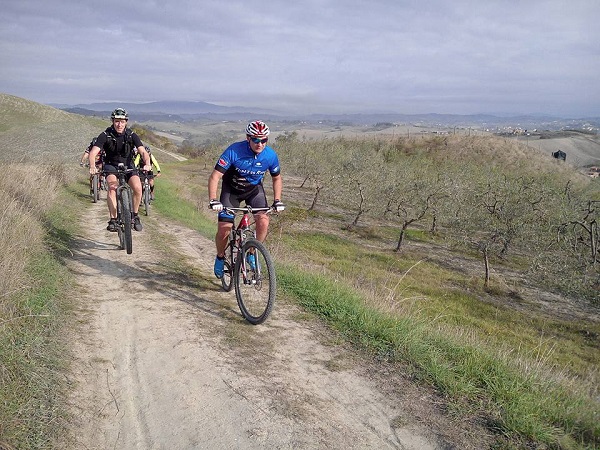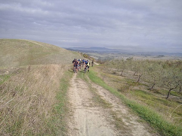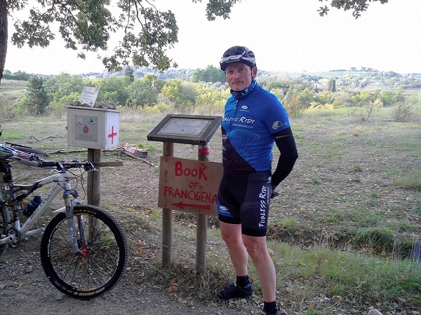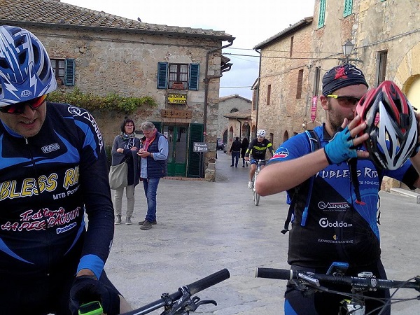 Giornata Storica per i Mitici Tubless Ridi !! il Percorso piu' Bello mai fatto !!! la Fantastica via Francigena !! da San Miniato Alto fino a Monteriggioni , ma procediamo con ordine , ore: 7,00 ritrovo dei Mitici a casa di Roby , arriva il Pulmann Gt , con tanto di Poster sul retro con l'Effige Tubless Ridi !!! a noi la Cannodale ci fa' un baffo!!! inizia la parte piu' delicata , l'imbarco delle Moto nel vano bagagli , operazione non facile ma piu' veloce del previsto , ore 7,40 partenza per San Miniato Alto tutti gli Atleti sono al loro posto ,volti tirati e concentrati ma grande soddisfazione per il percorso che andremo a fare !!! arrivo a San Miniato Alto alle 8,10 breve attesa dopo aver scaricato le Bici e via per la Grande Avventura !!! una scia BlueSky attraversa San Miniato fino ad imboccare la Mitica Via Francigena !!! sentiamo un rombo !!! ci voltiamo una jeep stile Marins ci scorta nello sterrato , il fratello del Mitico Mario chiude il gruppo !!! Fantastico , il percorso ci appare subito nella sua bellezza, un continuo sali e scendi con uno scenario collinare Unico !!! tutti sono entusiasti ci fermiamo piu volte per ammirarne la bellezza !!! alle 12,30 arriviamo alla prima Tappa: la Stupenda San Gimigniano con le sue mura e soprattutto con le famose Torri , ci facciamo largo tra un nugolo di turisti che ci osservano stupiti !!! nelle antiche vie del centro , usciamo dalle mura , ci fermiamo davanti ad una pasticceria !!! sosta per mangiare qualcosa e via verso la 2° tappa imbocchiamo nuovamente lo sterrato delle famose strade bianche , cominciamo a salire per entrare nel bosco oltrepassando guadi e single track Meravigliosi , il panorama mozzafiato delle colline toscane con un susseguirsi di Borghi antichi agriturismi fantastici , entriamo nel cuore della Francigena !!! breve sosta per porre la firma sul Mitico Registro e via riprendiamo il percorso , accarezzando fantastici vigneti tenuti come un giardino di casa , intanto tutti sono incantati da qesto meraviglioso percorso , nessuno perde un cm. il Mitico Mario ci riprende passo per passo , per un Video che sicurante sara' Unico !!! arriviamo alla 2° tappa: Colle Val d'Elsa , un gioiello incastonato nelle splendide valli , passaggio per il centro storico , e via verso la Meta !!! percorriamo altri 10 km sulla statale ,poi come d'incanto , imbocchiamo un sentiero dove di spalanca davanti ai nostri occhi un paesaggio Straordinario !!! un'immensa distesa di campi coltivati di un colore rosso intenso, alziamo gli occhi davanti a noi in cima al colle, il Castello di Monteriggioni con le sue mura di cinta degne di una inespugnabile Fortezza!!! breve ritorno sulla statale , poi imbocchiamo un sentiero bianco che ci accompagna dopo una salita ripida all'ingresso di Monteriggioni , gli ultimi metri sono durissimi , passiamo dallo sterrato all'acciottolato , fino dentro le Mura !!! Meraviglioso !!! il gruppo si ferma nella piazza pricipale, Incantevole , siamo arrivati , volti stanchi ma soddisfatti !!! ogniuno ha superato se stesso , qualcuno pensava di non farcela e invece tutti si sono comportati splendidamente !!!! ragazzi siete stati Meravigliosi orgogliosi di Voi !!! prima di andare a fare una meritata doccia foto di Gruppo !!! i Tubless hanno conquistato anche Monteriggioni !!! non ho piu aggettivi per definire questo Meraviglioso Gruppo !!! siamo entrati di diritto nella storia della MTB della Valdera !!! vorrei ringraziare tutti i partecipanti di questa splendida giornata di Sport !! gia' la MTB unica nel suo genere , che ci fa assaporare la gioa di percosi duri ma unici e di scenari fantastaci che solo questo sport sa Offrire !!! Grazie di nuovo Mitici Tubless Ridi nessuno mai come Noi !!! vorrei ringraziare il Mitico DI Grazia vero artefice di questa bellissima avventura !!! un Saluto Allezziti alla Prossima !!!