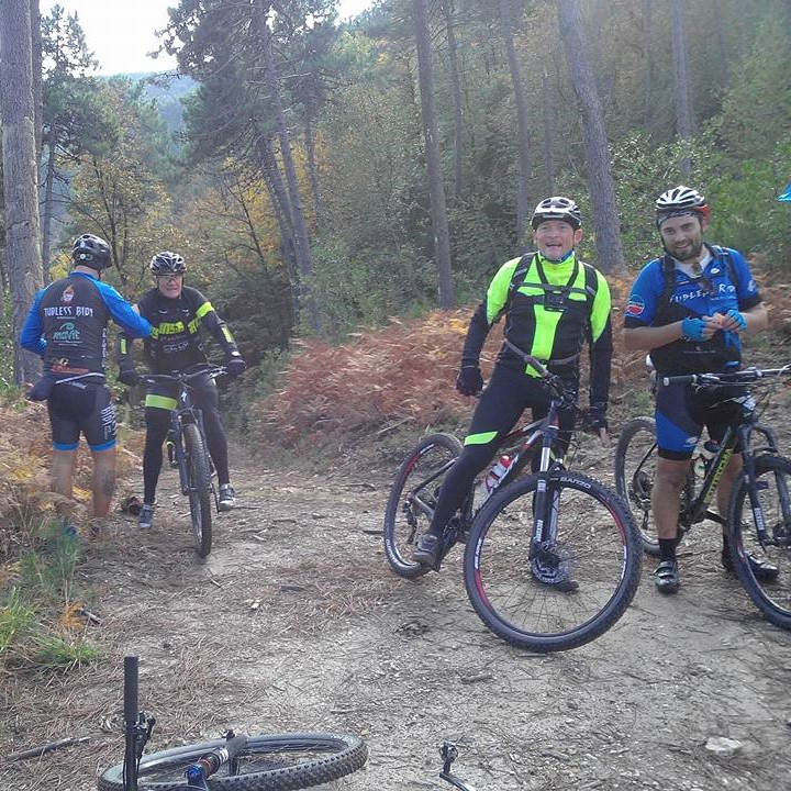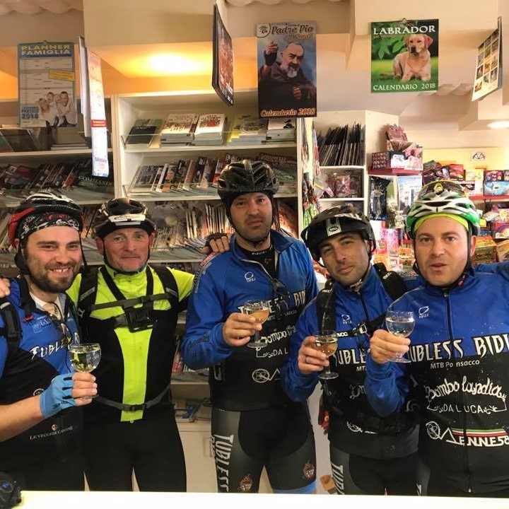 Ben ritrovati carissimi Allezziti !! stamane una scia Blue Sky illumina le strade della Lucchesia !!! ritrovo ore,9,00,alla partenza si presentano in molti,moltissimi,la Tublessmania non conosce ostacoli il rientro dopo un'estate pazza il Mitico Motomaffei !! attrezzato con batteria !! altro new Entry il funambolico Gianfranco,uno dei nuovi acquisti Fantastico !! il gruppone prende il via direzione Lucchesia senza dimenticare a Buti di prendere il Fantastico Mario,il percorso per molti sara'inedito,primo ostacolo il famoso guado,dove tutti o quasi lo attraversano senza particolari patemi,il nostro cameraman non perde un metro, anzi un Tubless,iniziamo la salita,le pendenze si fanno sempre piu' impegnative,ma lo scenario è bellisimo con un susseguirsi di sali e scendi immersi in un bosco Magico,ci fermiamo per la foto di gruppo in una piccola valle dove il sole ci riscalda,ripartiamo per salire ancora in un sentiero costellato di piccoli tornanti in contropendenza fino ad arrivare in un tratto di bosco fitto di alberi e vegetazione di ogni genere,dove inizia un sigle track meraviglioso,ad un cero punto il gruppone si ferma ,un ostaco un albero intralcia il cammino dei Mitici Tubless Ridi ,il Vigile Mario guida il gruppo oltre l'ostacolo è fatta, arriviamo all'incantevole paesino di Ruota entusiasti di questo percorso veramente divertente, nella piazzetta la Mitica foto di rito,siamo veramente belli !! Unici siamo i Tubless Ridi !!! un ringraziamento particolare al Fantastico Mario che ci ha guidato alla perfezione alla Meta !! aspettiamo con ansia il Famoso Video per rivivere passo dopo passo questa splendida avventura, Grazie Ragazzi anche stamani siamo stati Mitici !! alla prossima Allezziti !!